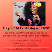I am a UCSF researcher and am conducting the Youth4Cure (Y4C) study to explore knowledge, attitudes, motivators and barriers to participating in HIV cure research among young adults living with HIV.