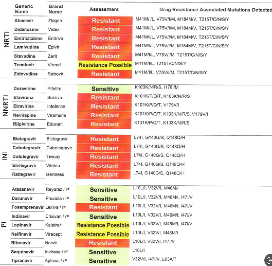 The patient was initially on ABC/3TC/DTG + DRV/c. I decided to switch him to B/F/TAF + DRV/c for the reasons above. However, once the archive came back, it showed pan-resistance to INSTIs and most NRTIs/NNRTIs - but thankfully, no PI resistance.